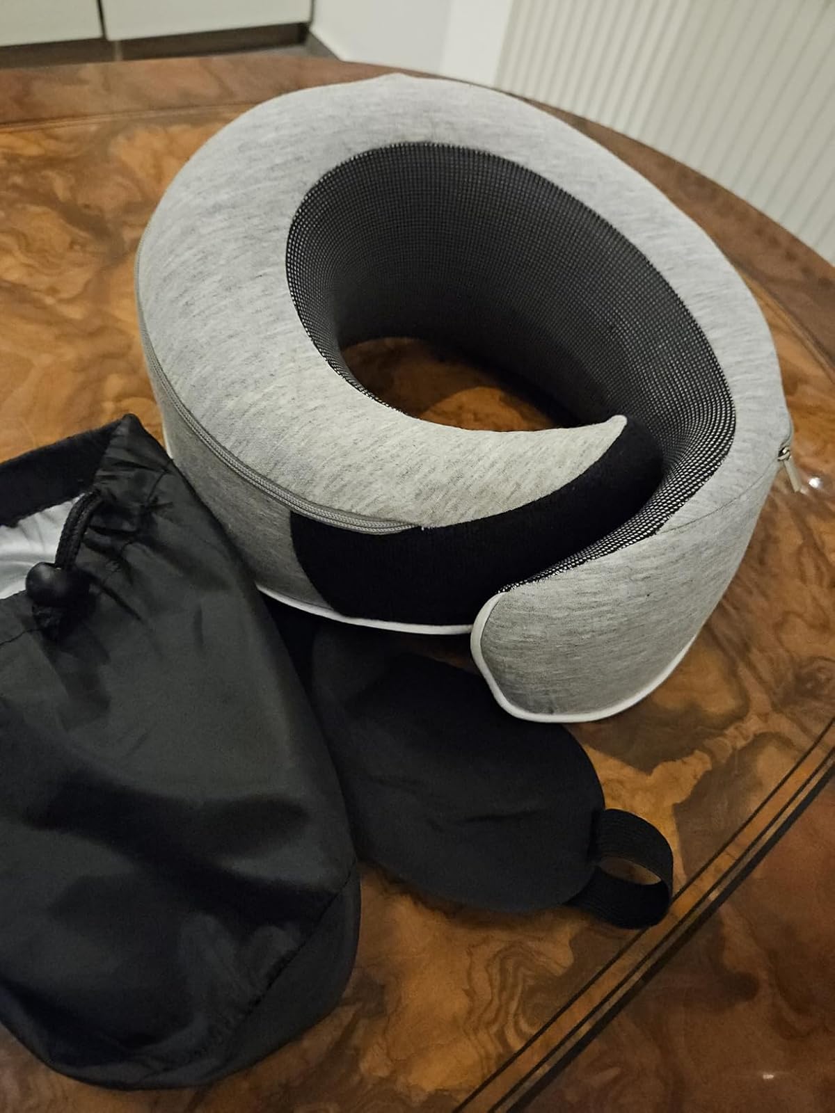 Pas encore utilisé en voyage, mais très doux et confortable. J’ai ajouté un petit feutre car un peu large pour mon cou.
